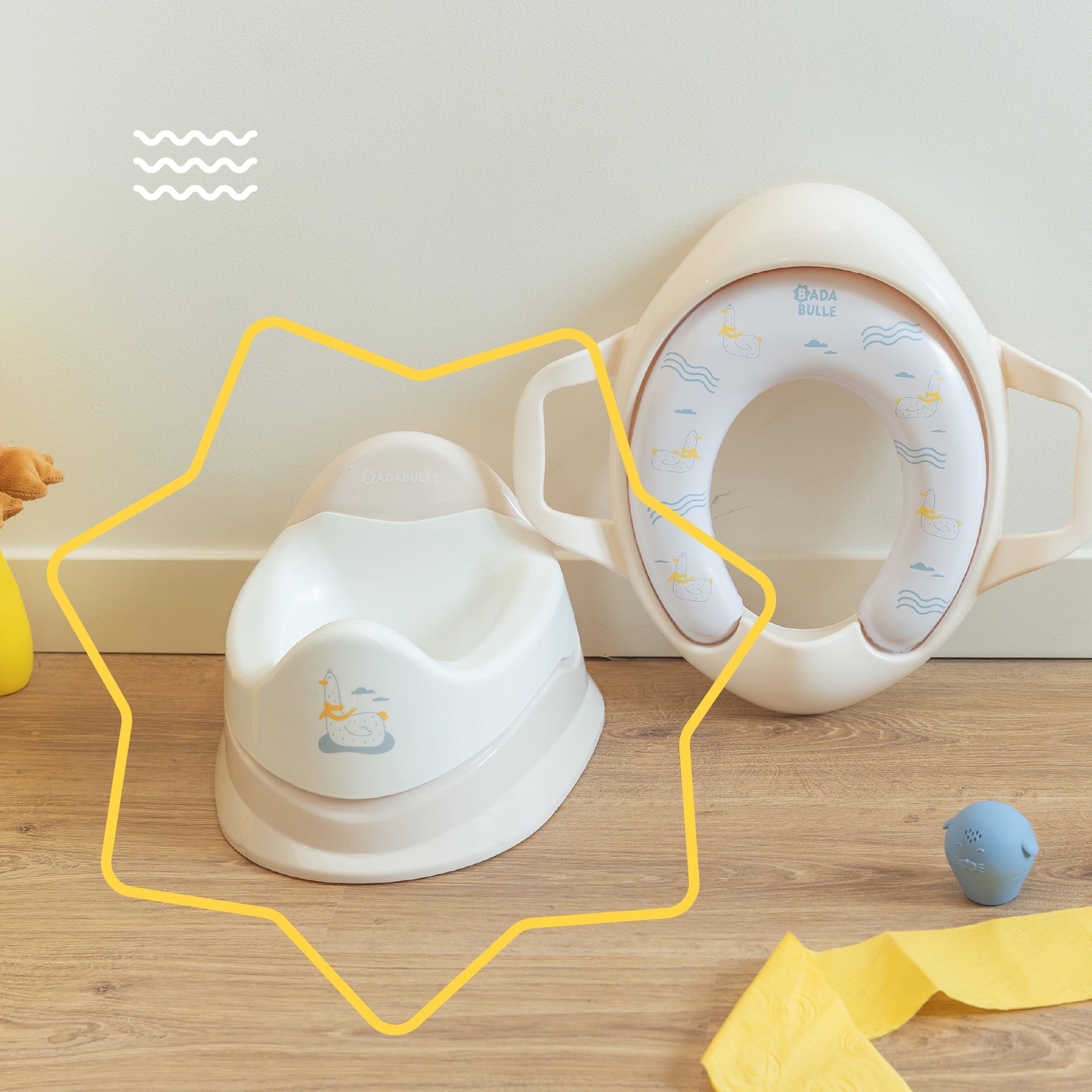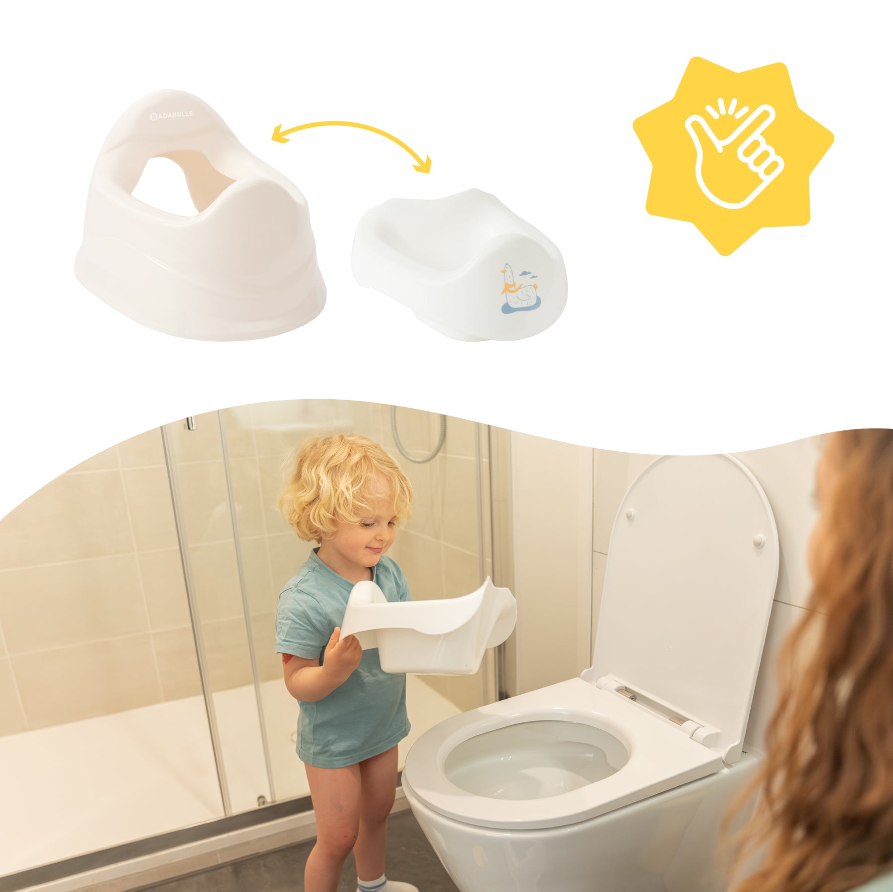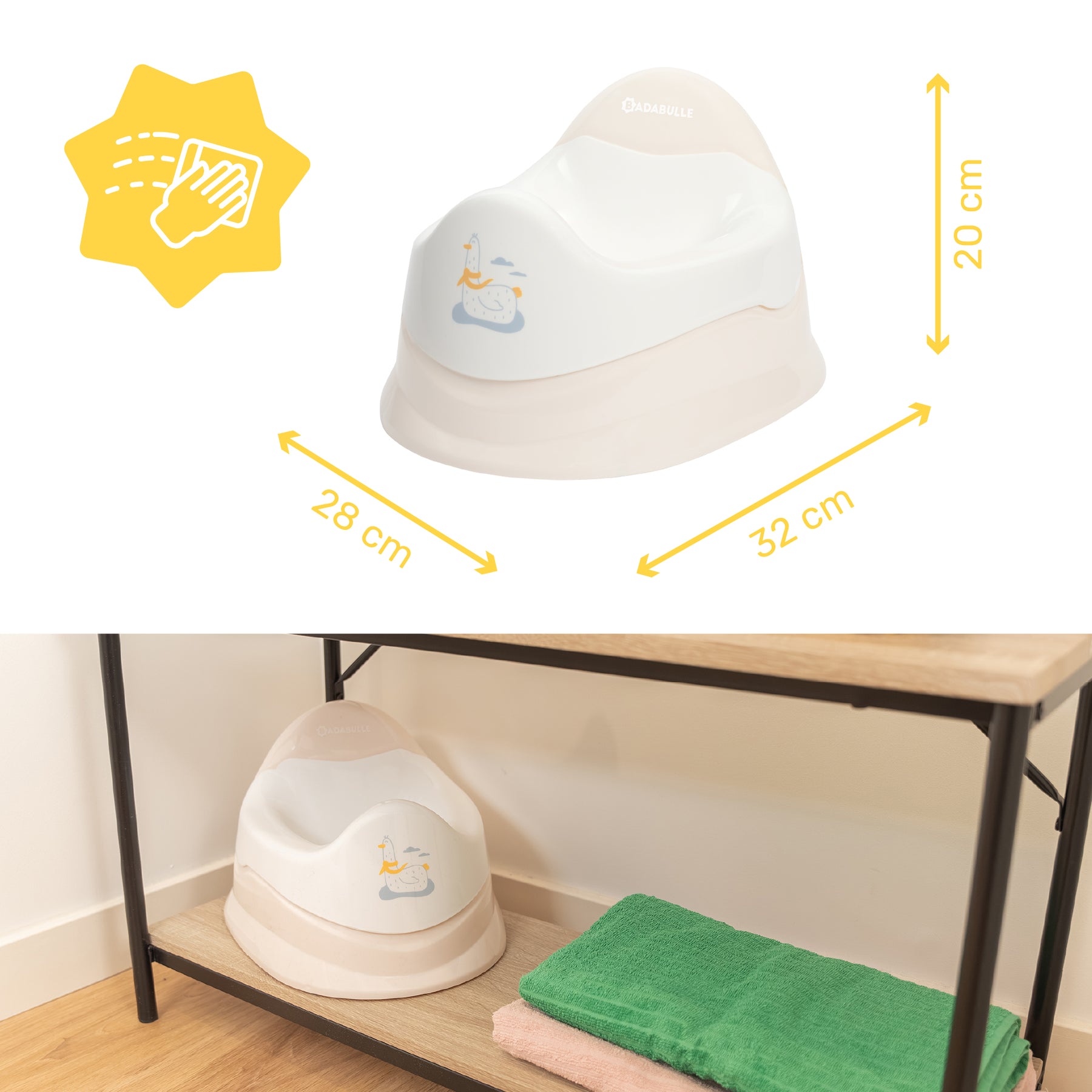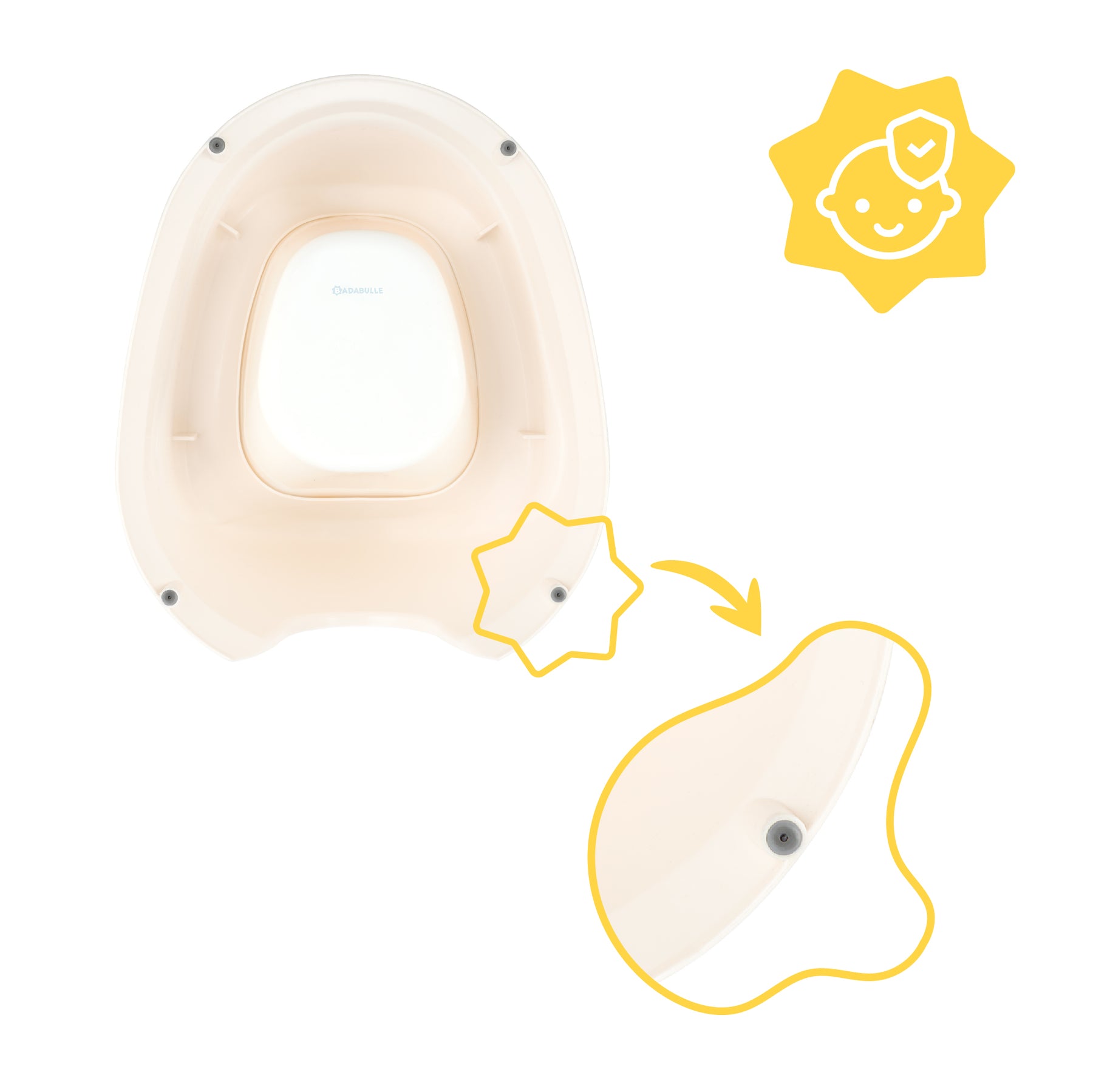El orinal ergonómico Badabulle con cubeta extraíble es el aliado perfecto para acompañarlo en el aprendizaje del baño de forma suave y natural.
