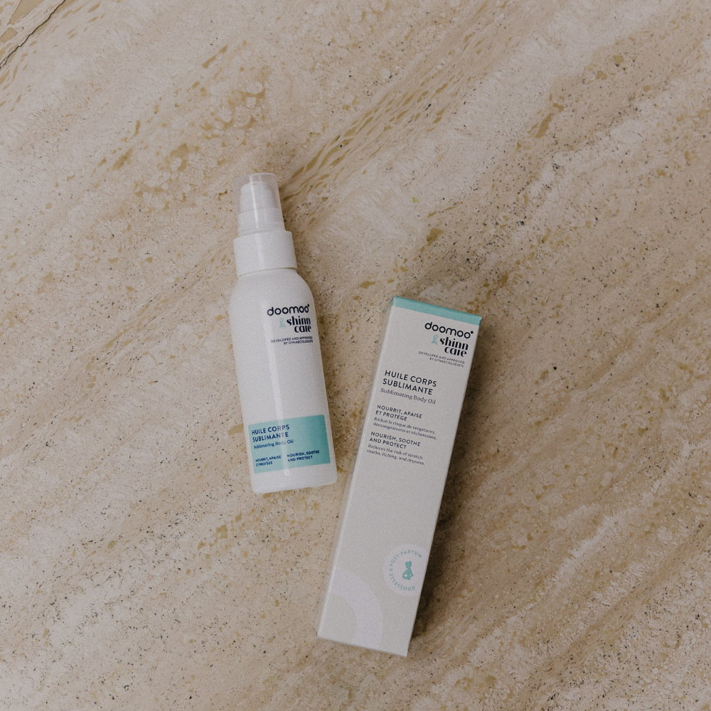 El Aceite Íntimo Protector ha sido diseñado para calmar, hidratar y proteger las zonas íntimas sensibles durante el embarazo, el posparto y en el día a día, incluso para los más pequeños.