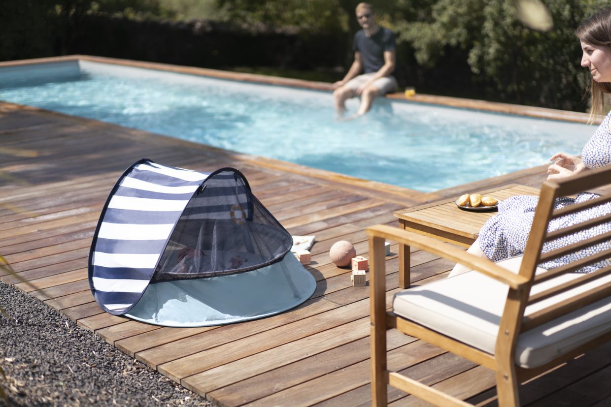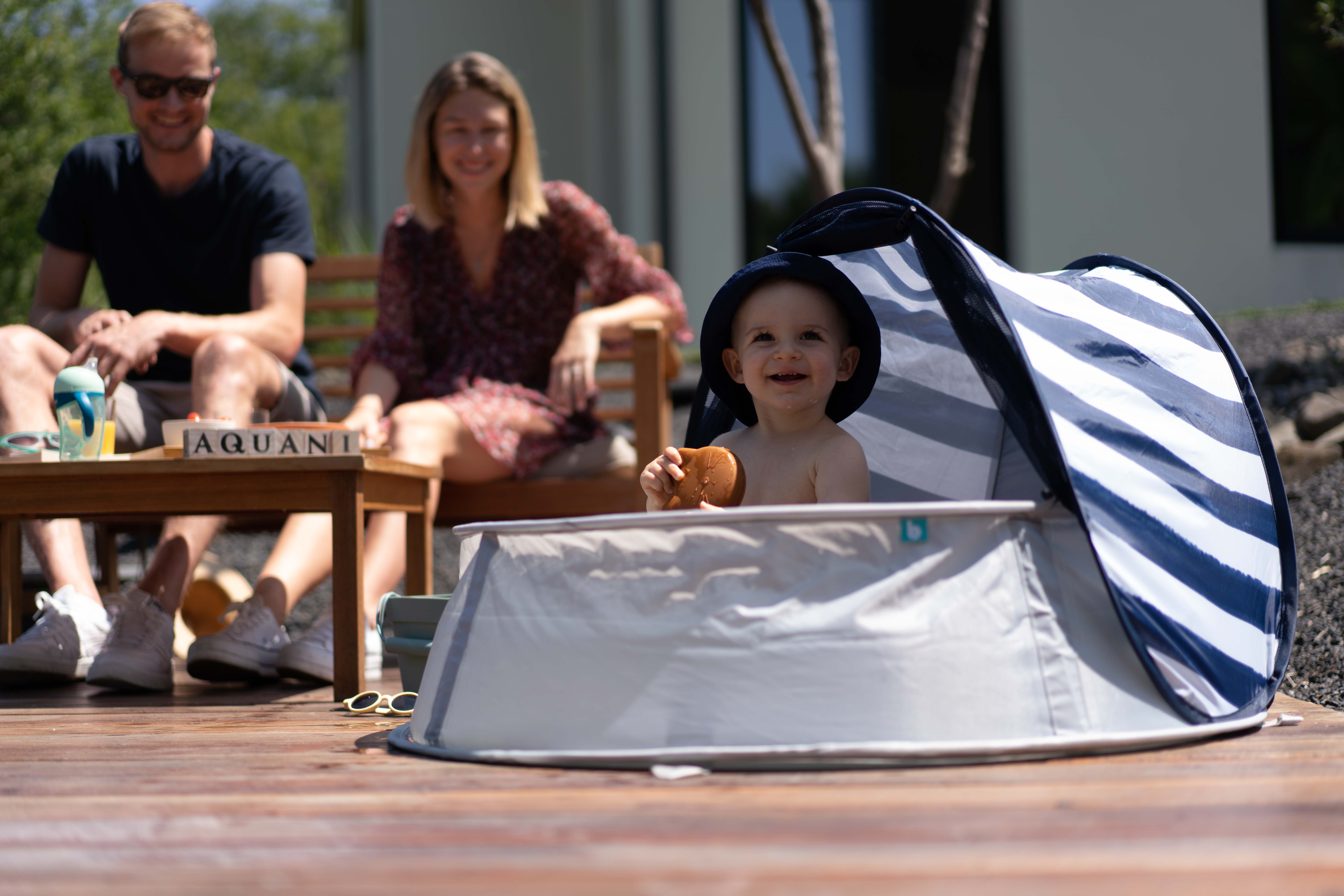 Disfruta del buen tiempo con tu bebé sin renunciar a la seguridad ni a la comodidad. La Aquani es la solución perfecta para proteger a tu pequeño del sol, los insectos y el viento mientras juega, descansa o se refresca.