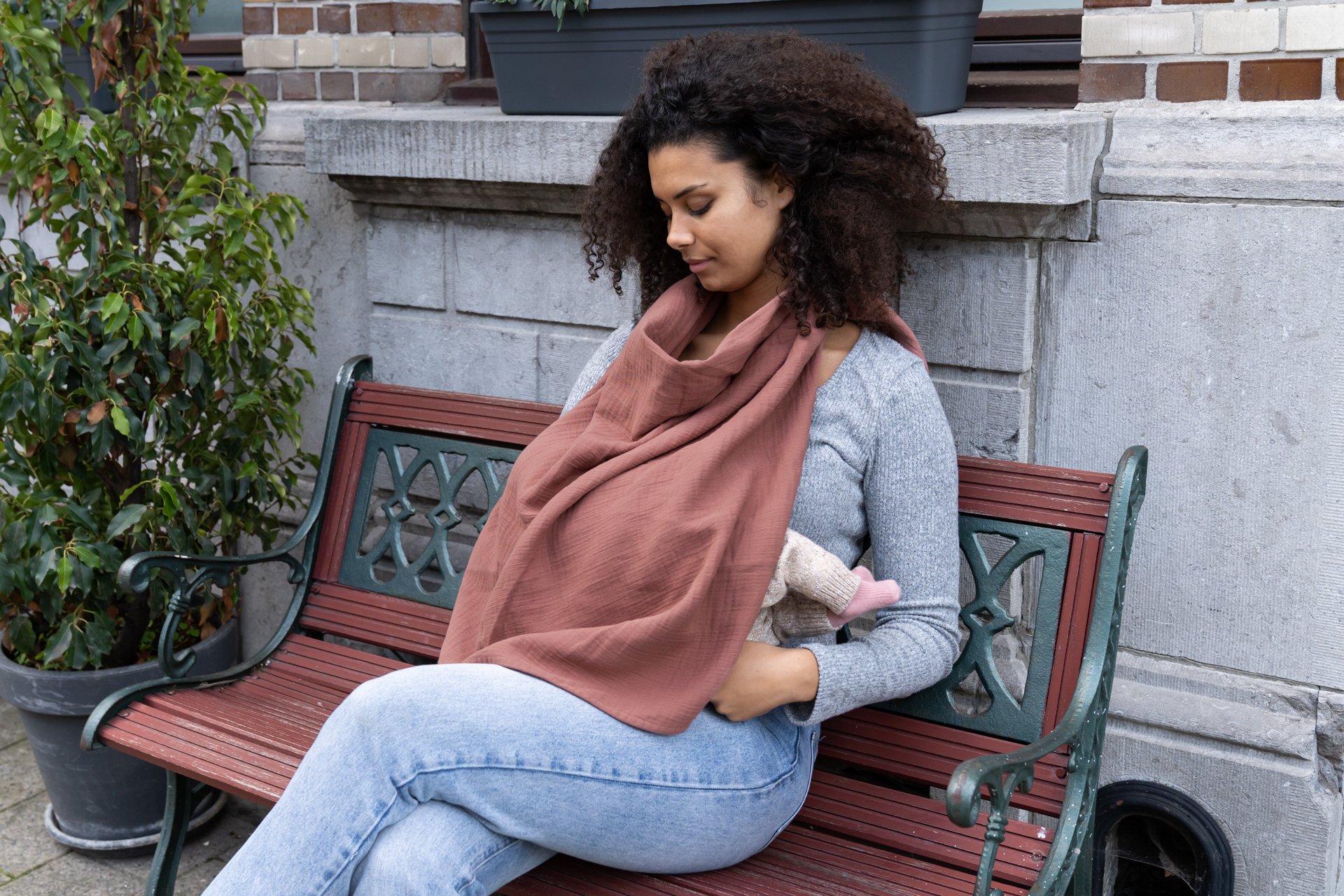Esta ligera capa de lactancia no ocupará espacio en tu bolso cambiador. La capa de lactancia Mom'n Play se convertirá en el accesorio imprescindible cuando salgas con tu bebé.