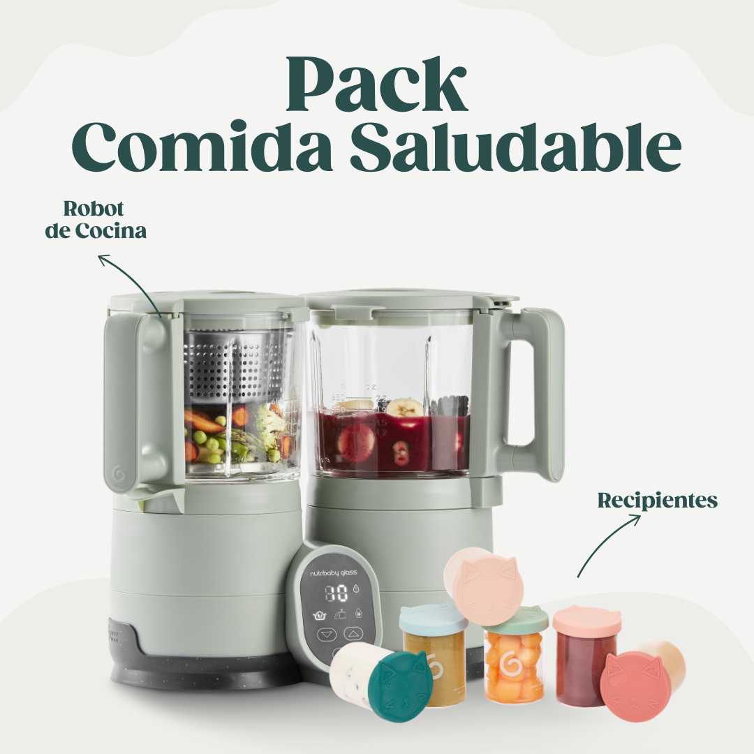 Prepara alimentos frescos, saludables y adaptados a cada etapa del crecimiento de tu bebé con el Nutribaby Glass, el mejor robot de cocina multifunción para padres que buscan practicidad y nutrición.