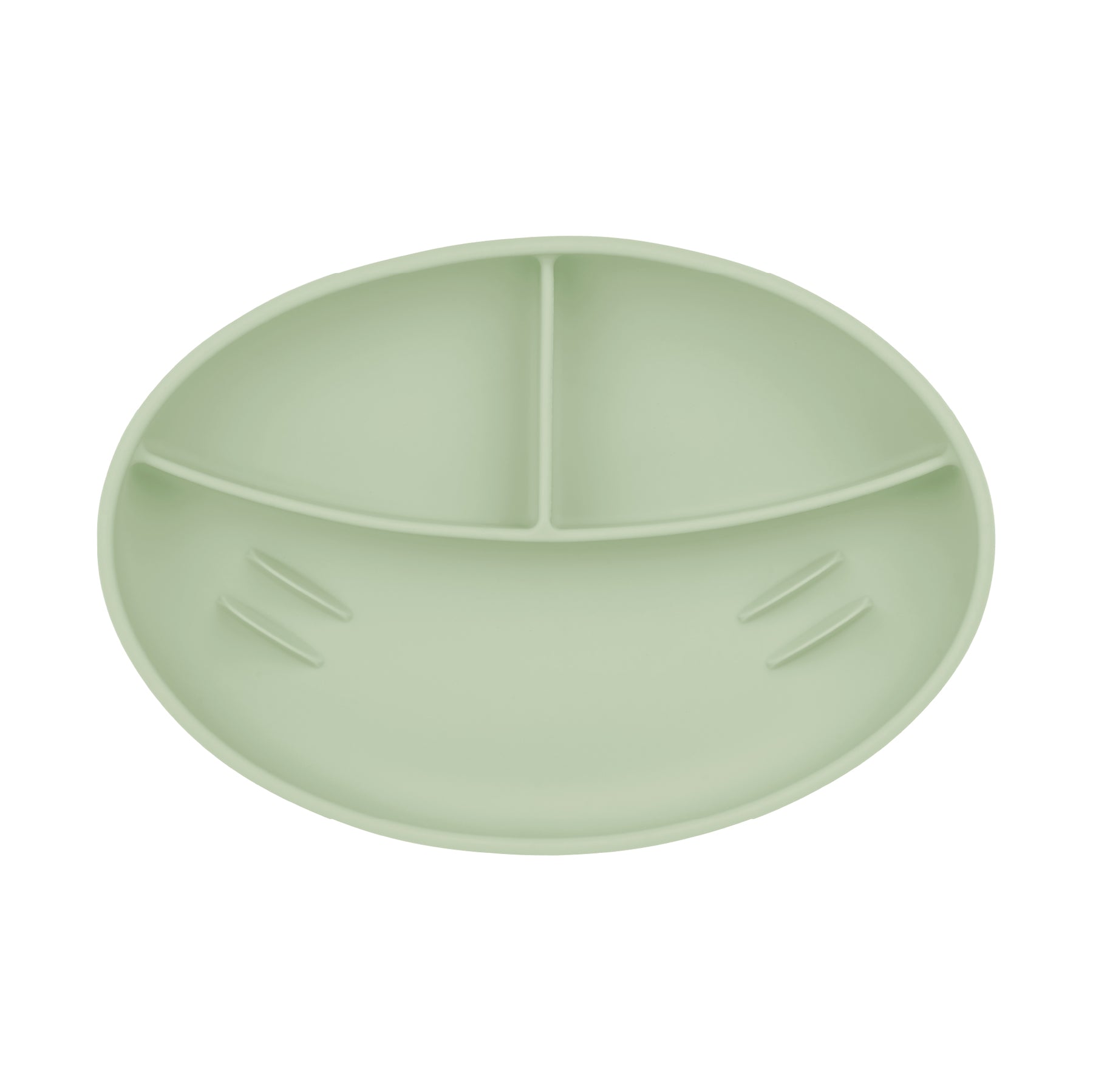 Fabricado en silicona flexible, resiste los golpes cotidianos y acompaña al bebé durante mucho tiempo. Su material suave y antideslizante tranquiliza a los padres y anima al niño a manipular el plato con total seguridad.