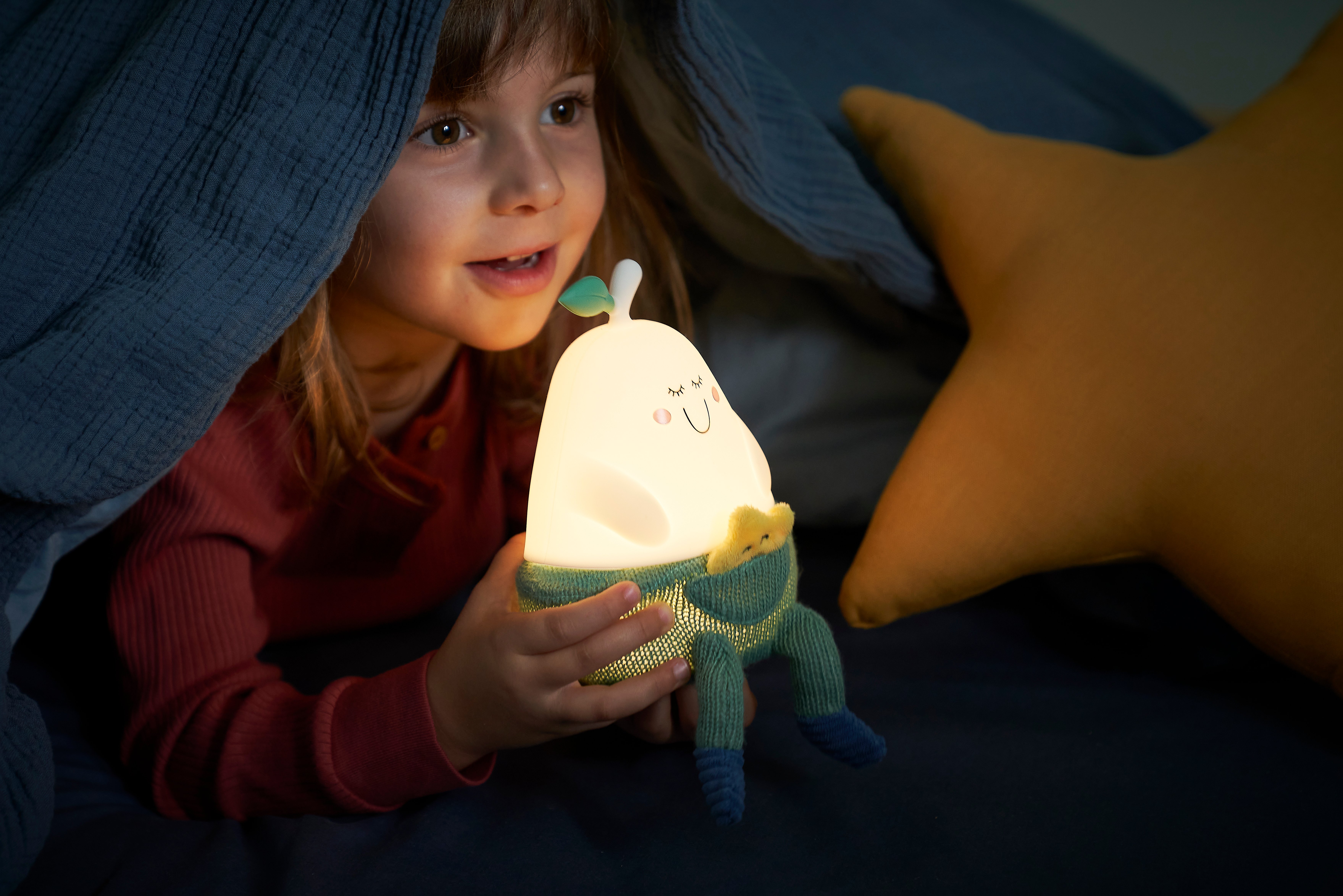 Bertille, nuestra lámpara de noche de silicona con forma de simpática pera, será un auténtico referente para ayudarle a dormirse plácidamente.